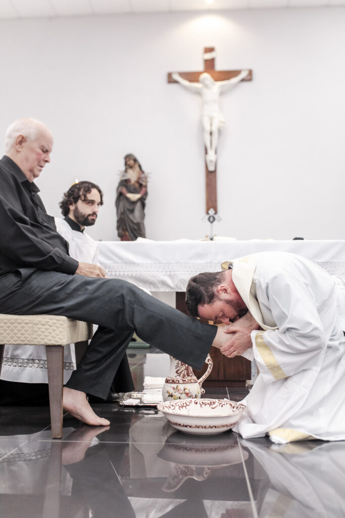 Na Quinta-feira Santa, a comunidade da Igreja São Peregrino se reuniu para dar início ao Tríduo Pascal, celebrando a instituição de dois grandes tesouros da nossa fé: a Eucaristia e o Sacerdócio.